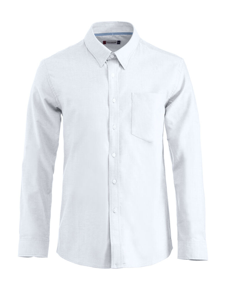 Camicia manica lunga. Tessuto con trattamento easy-care. Versione uomo con taschino e colletto button down nascosto. Polsini regolabili con bottoni. Vestibilità slim.